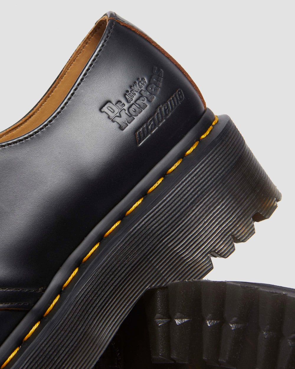 Unapologetic, fearless, authentic. There¡¯s an undeniable crossover in spirit between Dr. Martens and MadeMe. Since launching the women¡¯s streetwear label MadeMe in 2007, Magee has transformed it into a ubiquitous New York brand and an inclusive community that occupies a still revolutionary space in the male dominated streetwear industry. Dr. Martens, whose boots and shoes have been at the feet of a long line of riot grrrl disruption, makes a natural partner for MadeMe as it continues its tradition of rebellion. Our first collaboration introduces a rework of our 1461 shoe stacked on a platform Quad sole with a steel toe exposed through a playful heart shaped cut out. There¡¯s dual branding present throughout, and the sole is secured with our classic yellow welt stitching.
