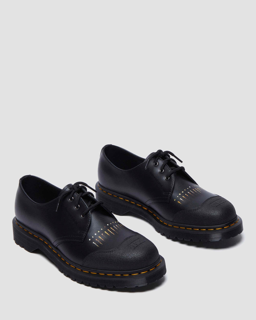 Celebrating the 30th anniversary of Nine Inch Nail¡¯s seminal album, The Downward Spiral. The black 3-eye 1461 shoe is reworked with the ¡®Crystal Teeth¡¯ from the album artwork across the vamp. The upper is constructed from hardwearing Backhand and Smooth leathers with a NIN embossed rubber grain toe-cap. Set on a black commando tread sole with a yellow welt stitch. Each pair is equipped with a set of NIN and a set of pure black laces.